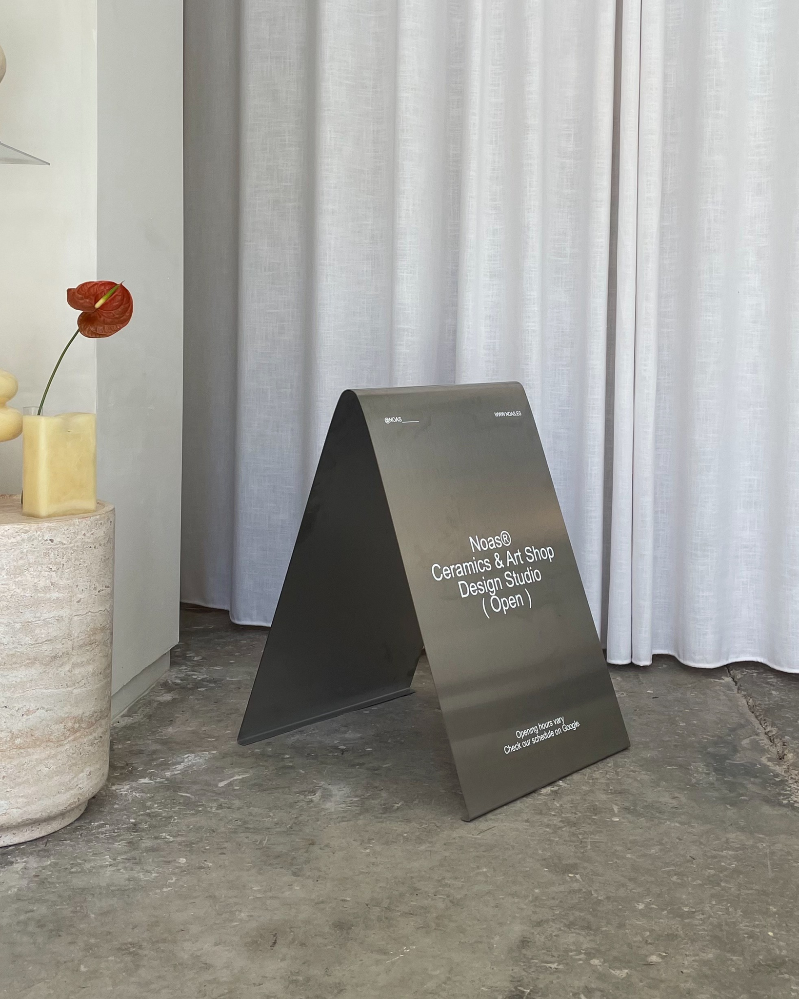Hemos versionado el tradicional cartel en forma de A para ofrecerte un diseño actualizado y minimalista, fabricado en acero inoxidable pulido. Este soporte metálico diseñado para ser colocado a la entrada de la tienda, te permitirá llamar la atención de tu público mientras cuidas de la imagen de tu marca. Para producir este nuevo producto trabajamos junto a artesanos locales especializados en el tratamiento del metal.
